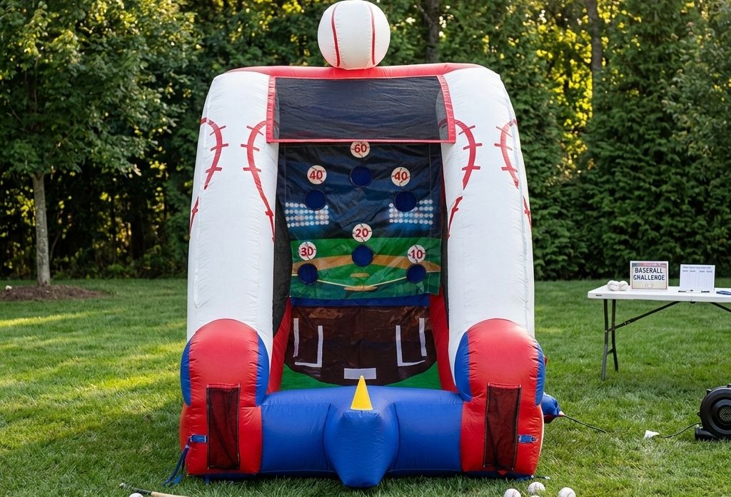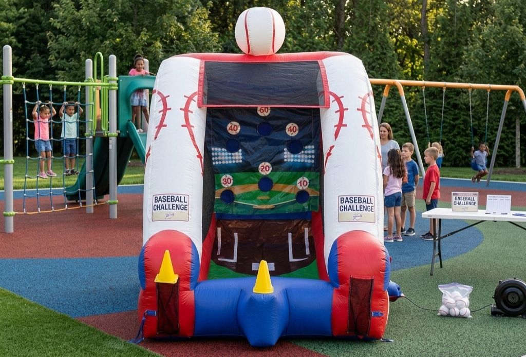 - Batter Up Baseball Challenge Game: A 14x9x12 ft inflatable batting game with targets of increasing difficulty for all ages!