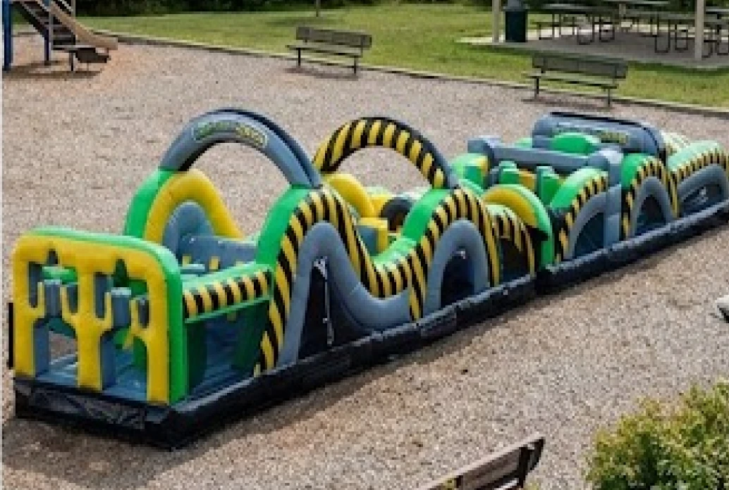 Radical Run 60 Foot Obstacle Course with Rock Climb Slide At Ace Inflatables, we are proud to bring one of the most action-packed inflatables in our entire fleet straight to your next big event. This massive 60-foot obstacle course is loaded from start to finish with every challenge imaginable, sending competitors racing over, around, and through barrier after barrier in an all-out battle to the finish line. With a rock climb slide built right into the course, the excitement reaches a whole new level as kids conquer the climb and fly down the other side. It is the kind of course that turns every guest into a ninja warrior and every event into an epic competition. Sixty feet of pure adrenaline, built for the moments that need to be truly unforgettable.