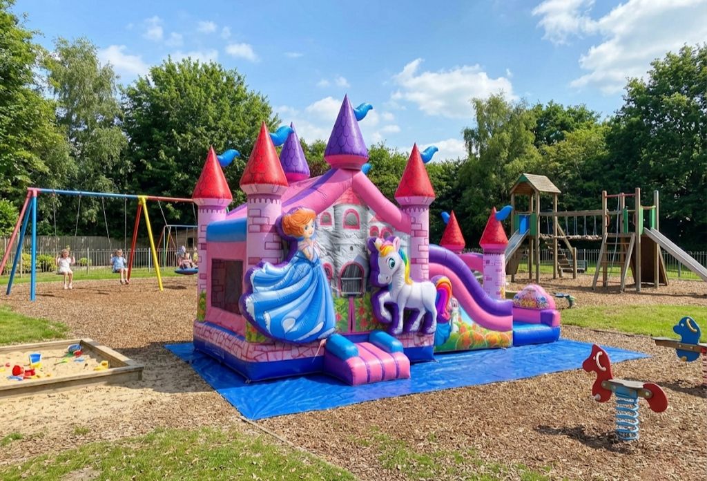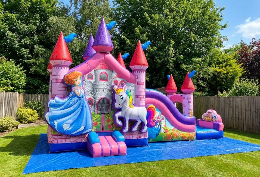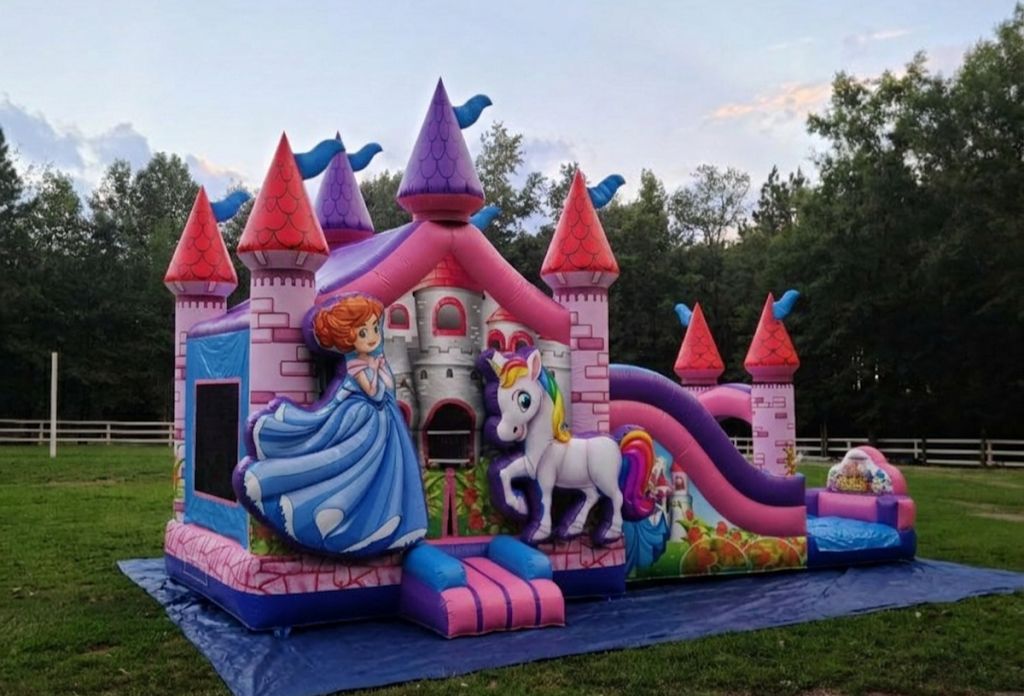 - Magical Pink and Purple Bounce Combo: A stunning princess unicorn themed inflatable that makes every little girl feel royal!