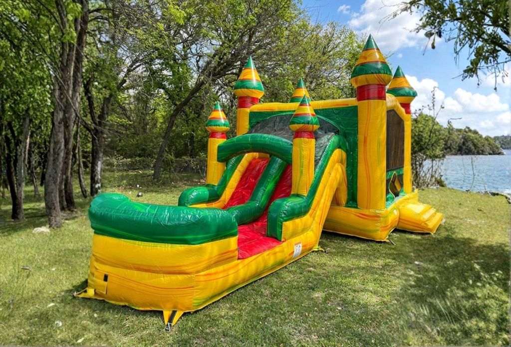 - Double Decker Rainbow Bounce Combo: A vibrant all-in-one inflatable with a bounce area, climbing stairs and built-in slide!
