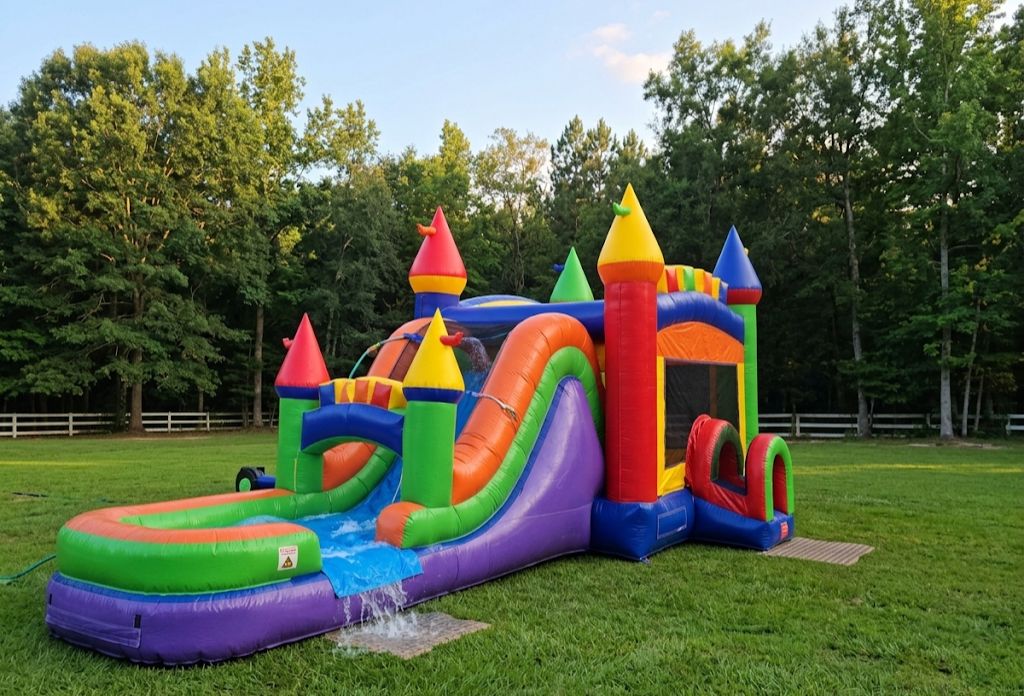 - Bounce House with Slide and Safety Netting: Mesh walls and inflatable barriers keep kids safe while the fun never stops.